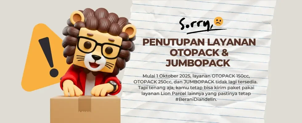 Kami menginformasikan, mulai 1 Oktober 2025, layanan OTOPACK 150 cc, OTOPACK 250cc dan JUMBOPACK tidak tersedia di Lion Parcel.